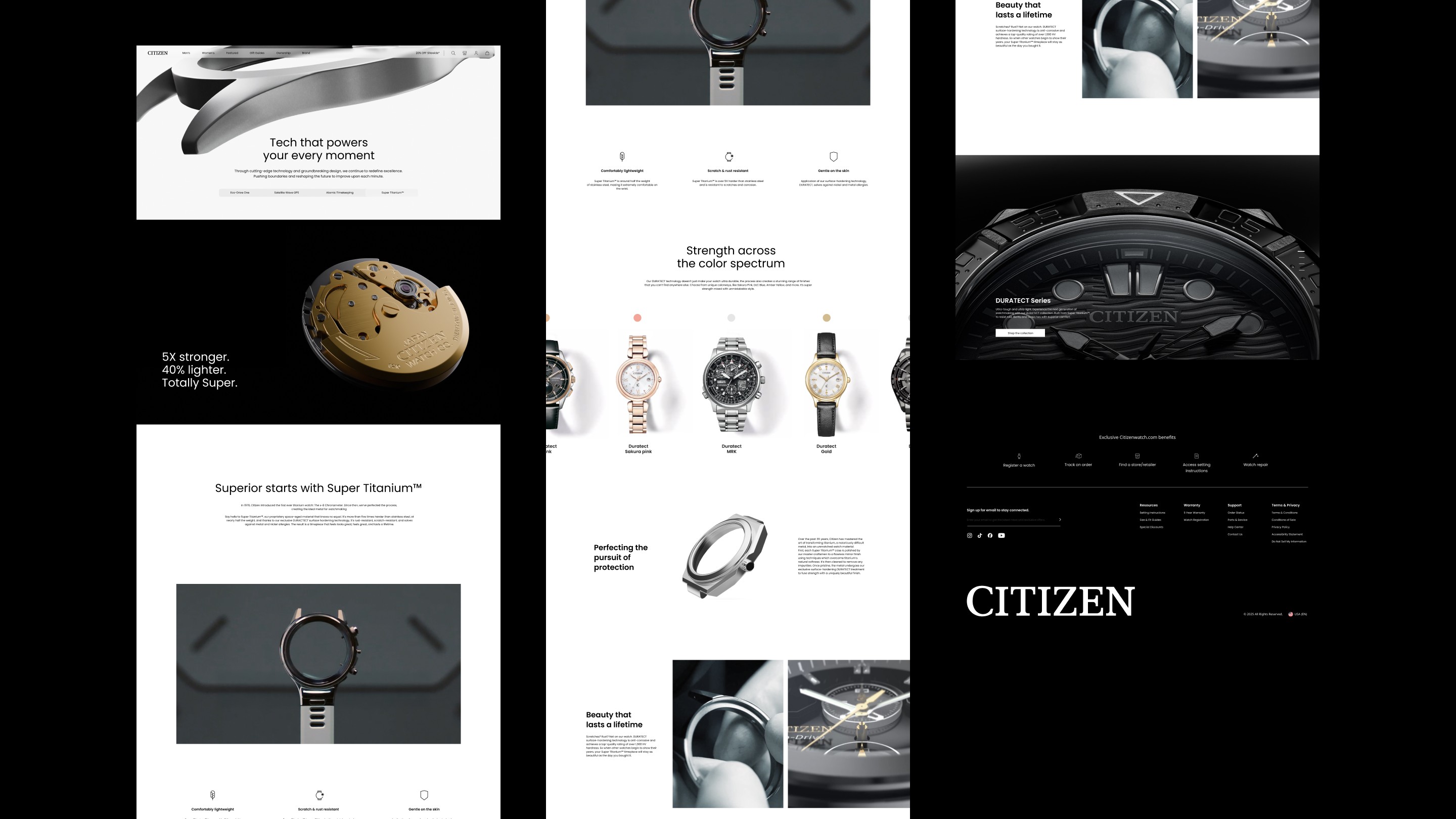 This approach allows Citizen’s internal teams to manage and update content independently through a Component Management System. By prioritizing modularity, the design simplifies maintenance and provides a sustainable framework for the brand’s global digital presence.