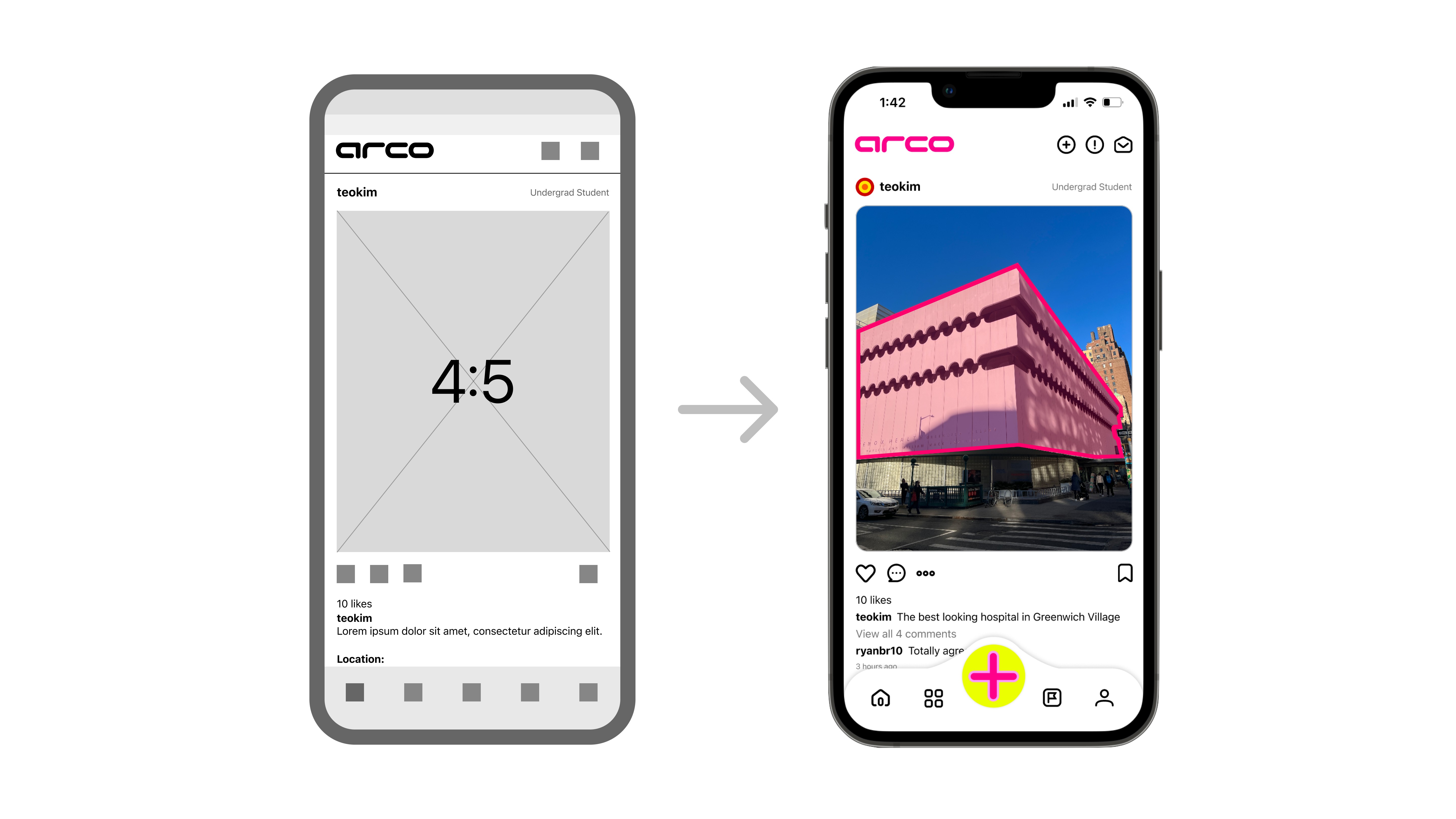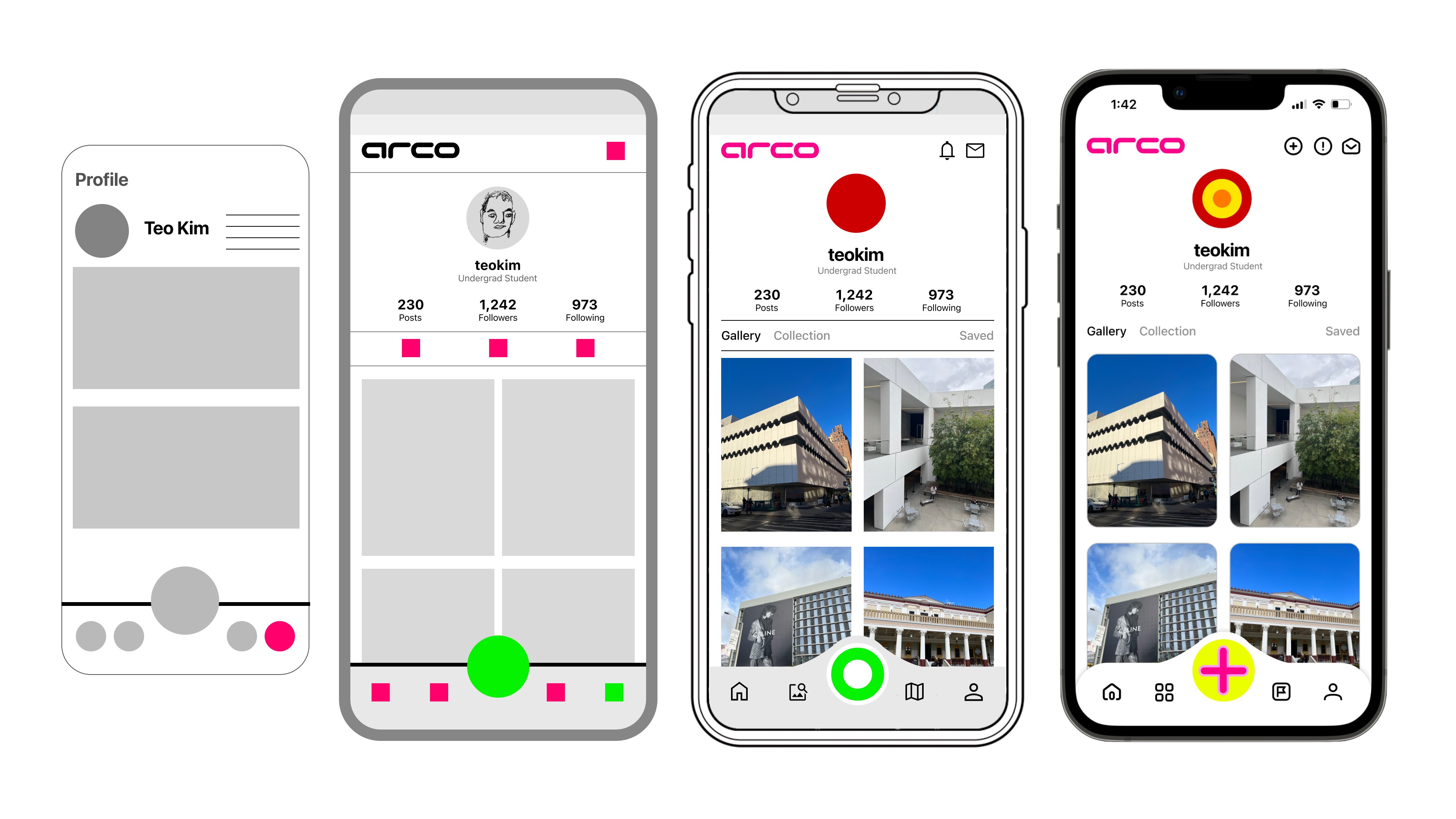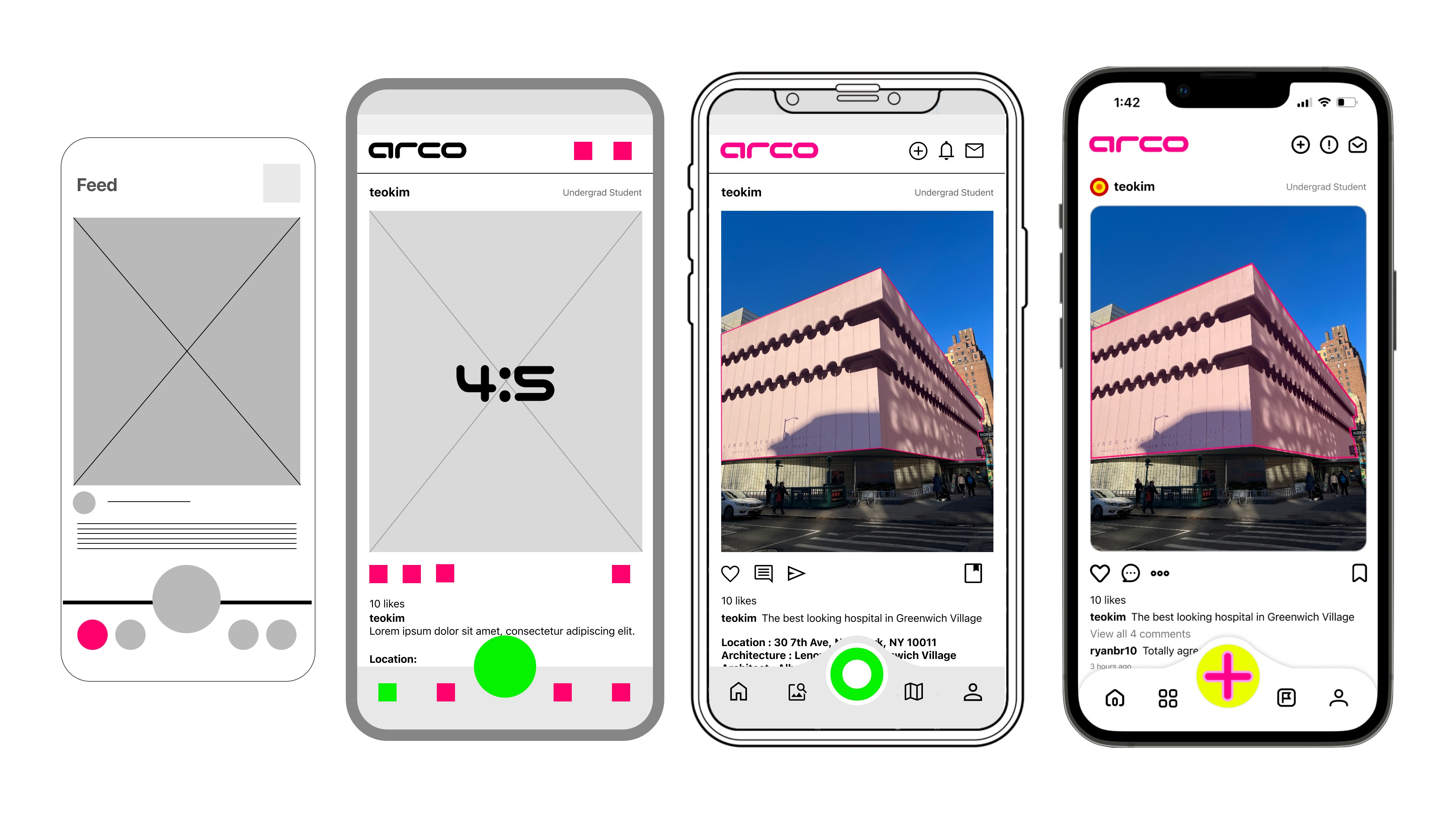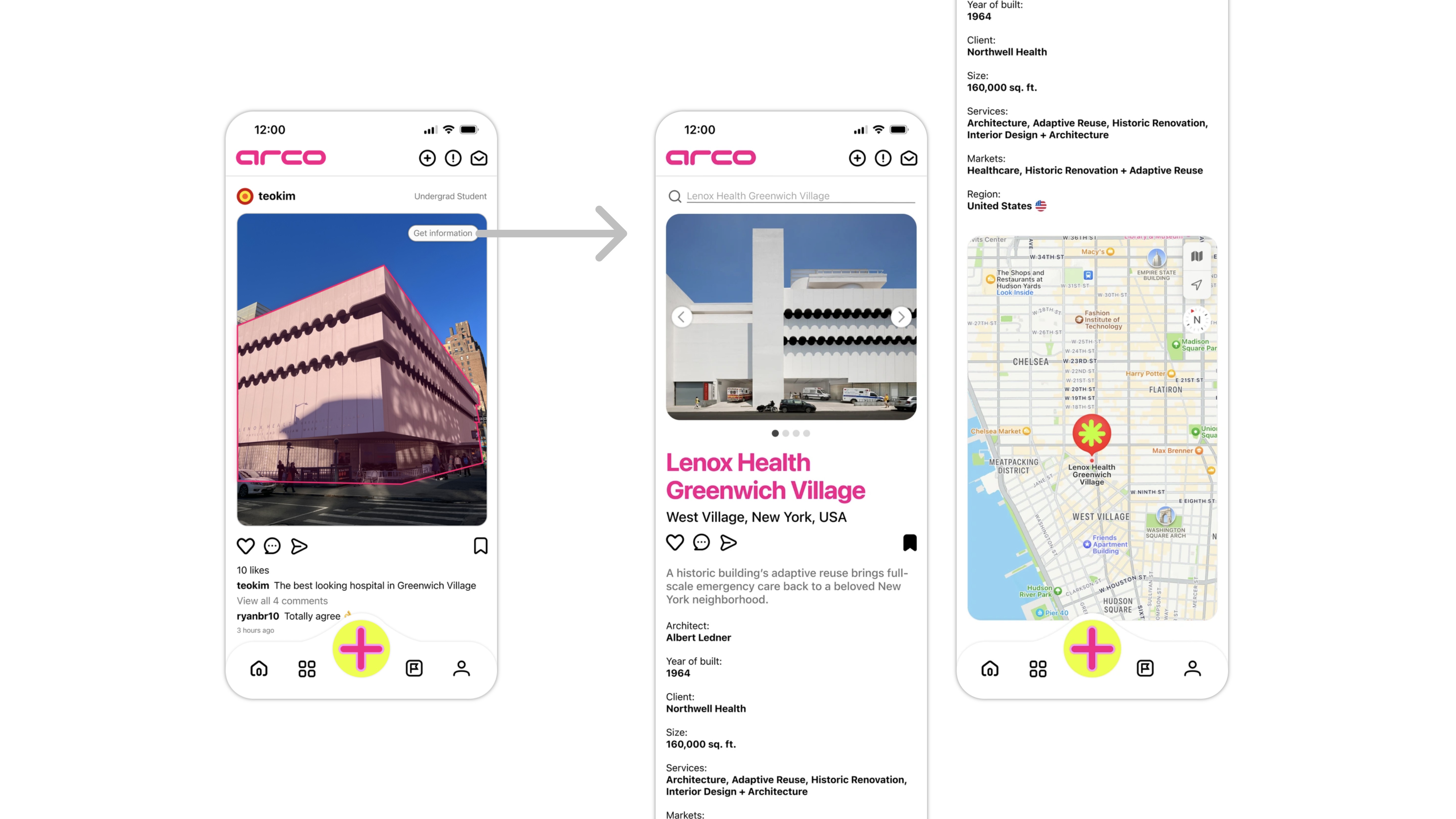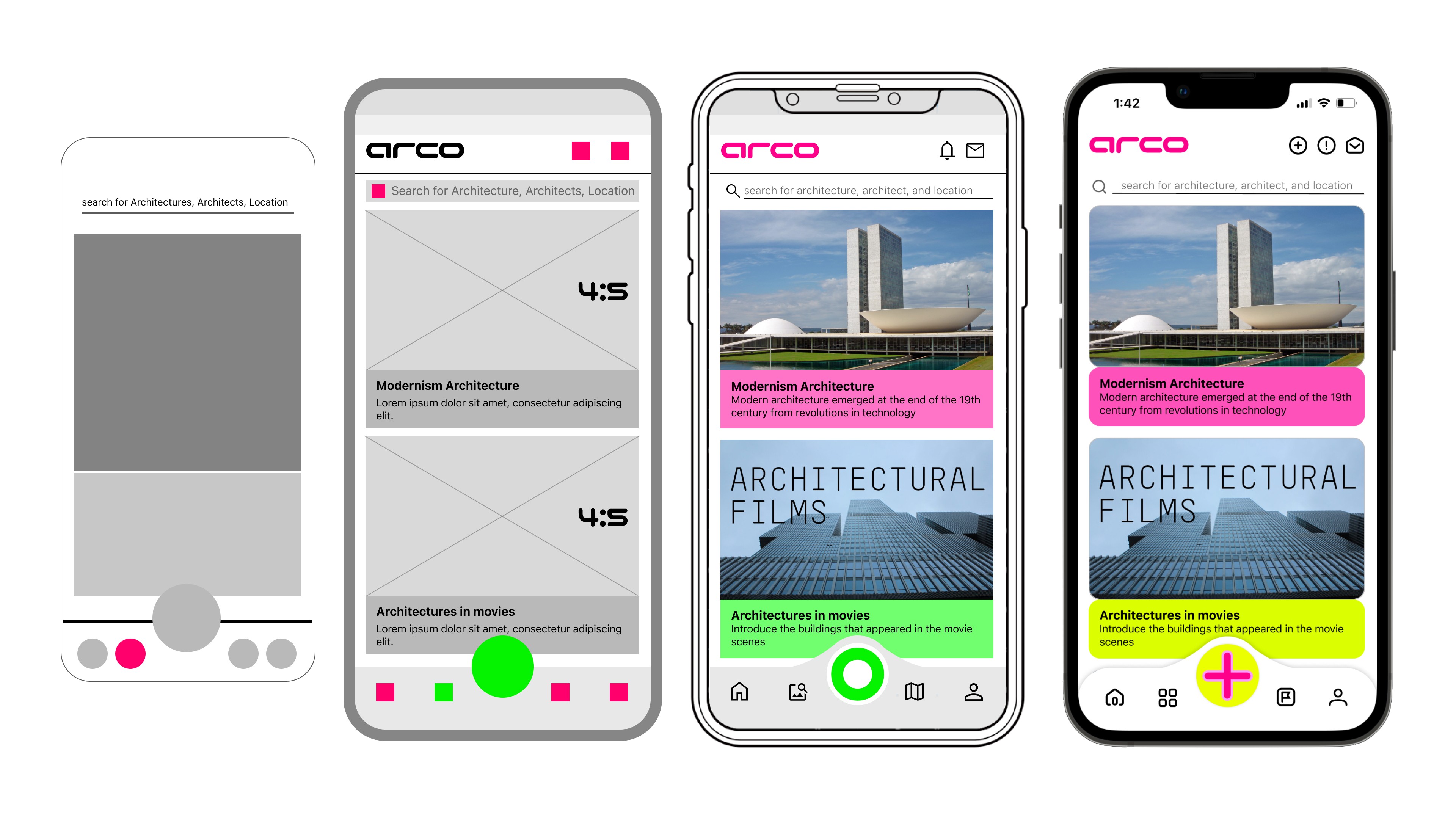 In Arco, neon pink isn't just a color; it's a tool. Inspired by the innovative use of color in Richard Rogers' architecture, I've integrated this vibrant hue into our app's key technical features.