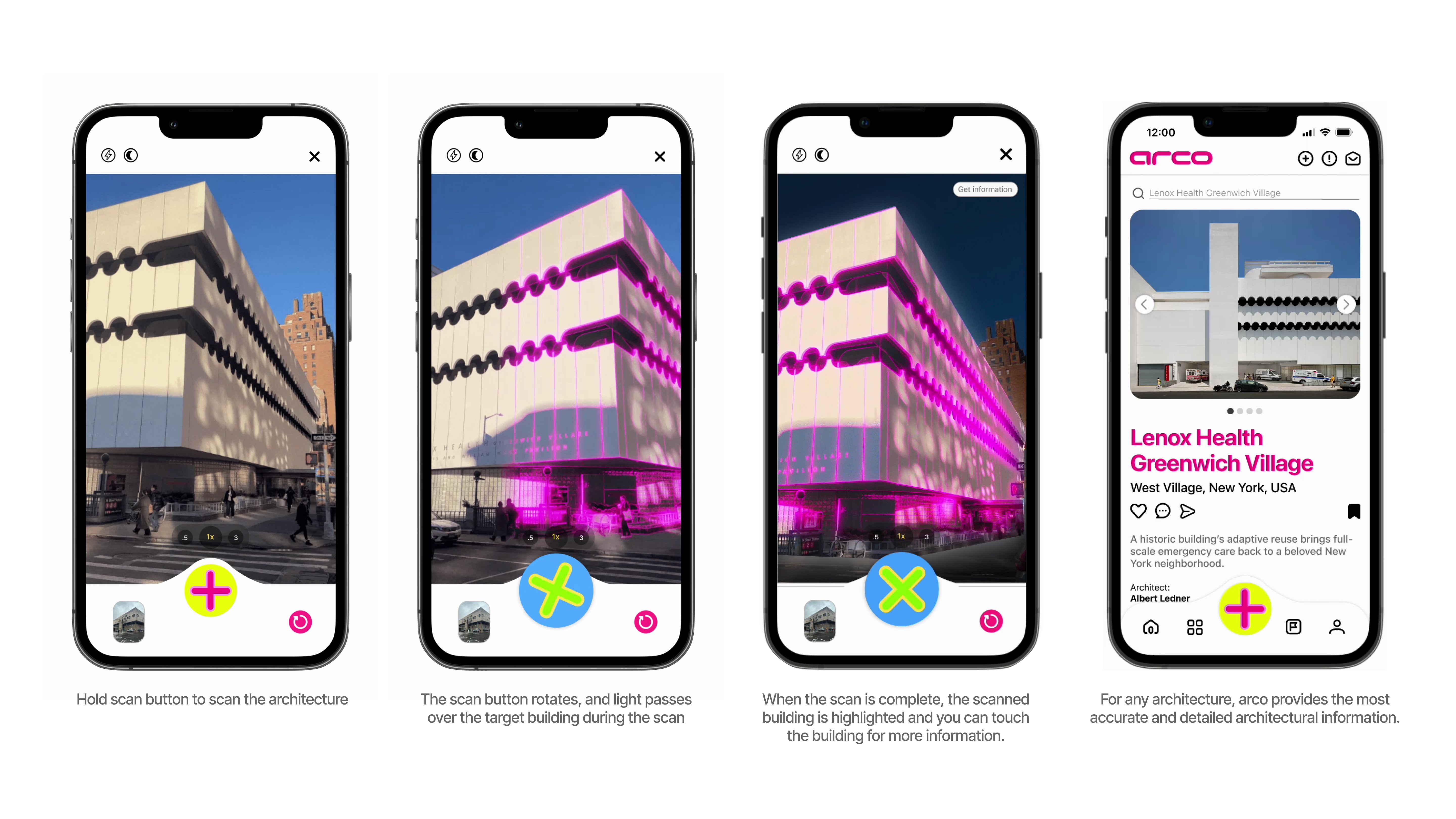 With Arco, the city is filled with your inspiration. Arco's scanner feature brings architecture students off campus. You can easily get the information by only scanning the buildings with the arco app.