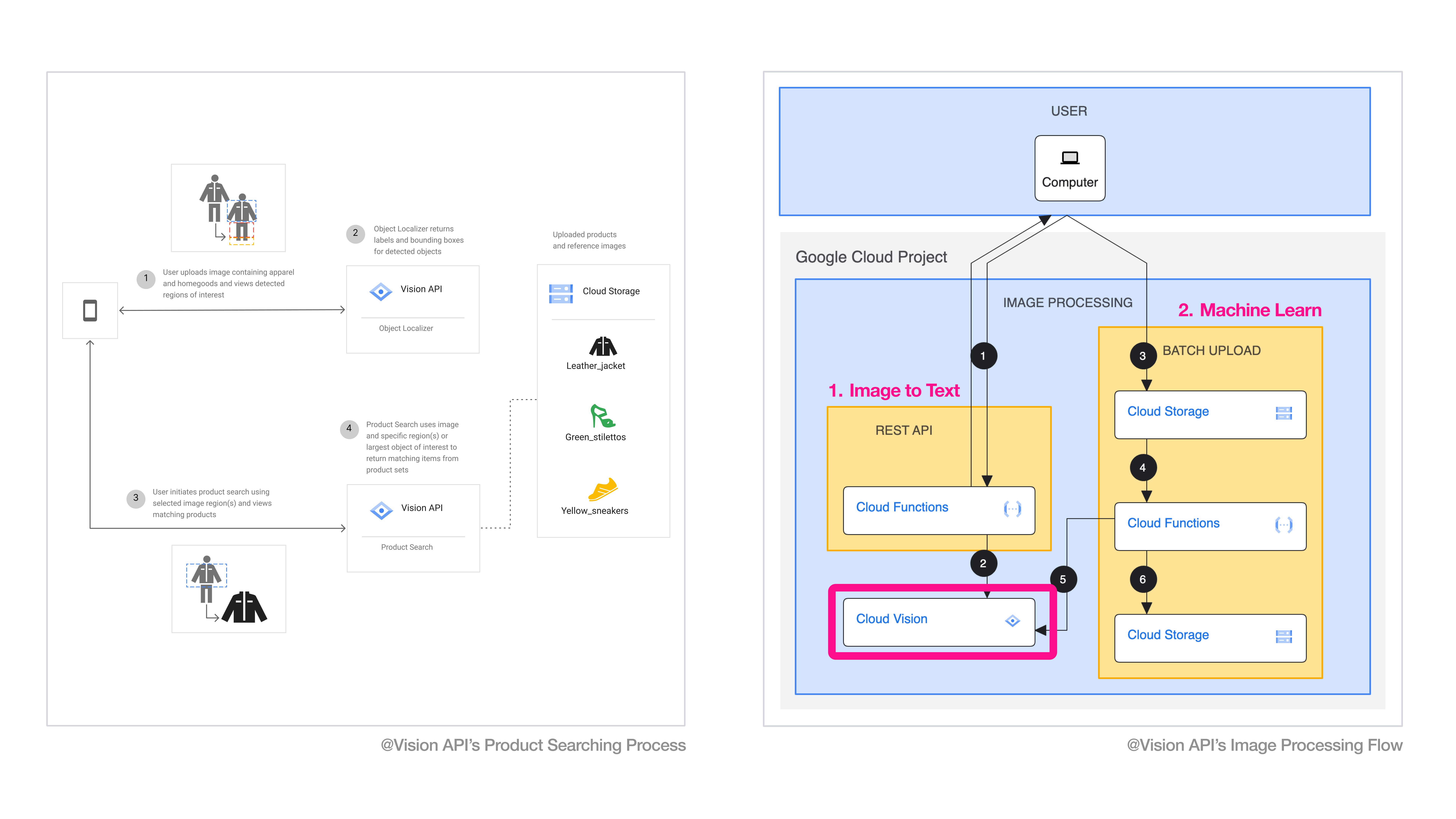 Google Cloud’s Vision AI suite of tools combines computer vision with other technologies to understand and analyze video and easily integrate vision detection features within applications, including image labeling, face and landmark detection, optical character recognition (OCR), and tagging of explicit content.