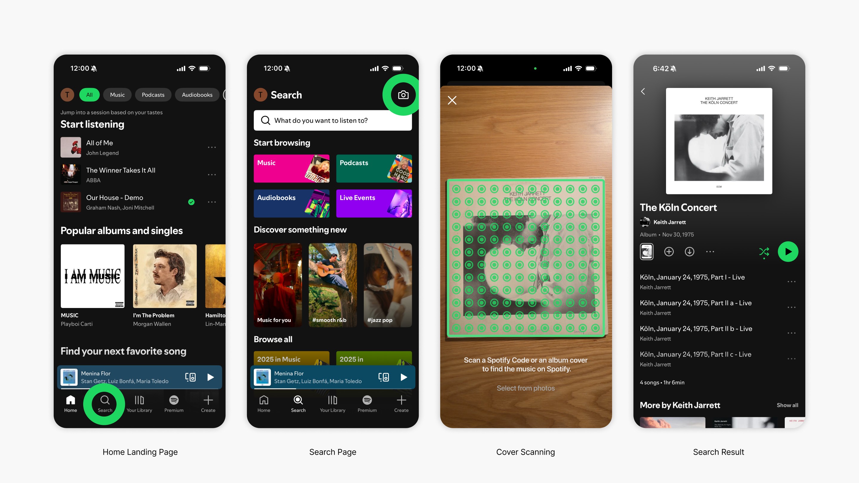 By extending Spotify’s existing Camera Search for Spotify Codes with image recognition technology, I designed a seamless, native solution for physical music discovery. Without changing the current user flow, visual analysis is naturally integrated into the camera experience, allowing users to scan any album cover and move directly into listening.