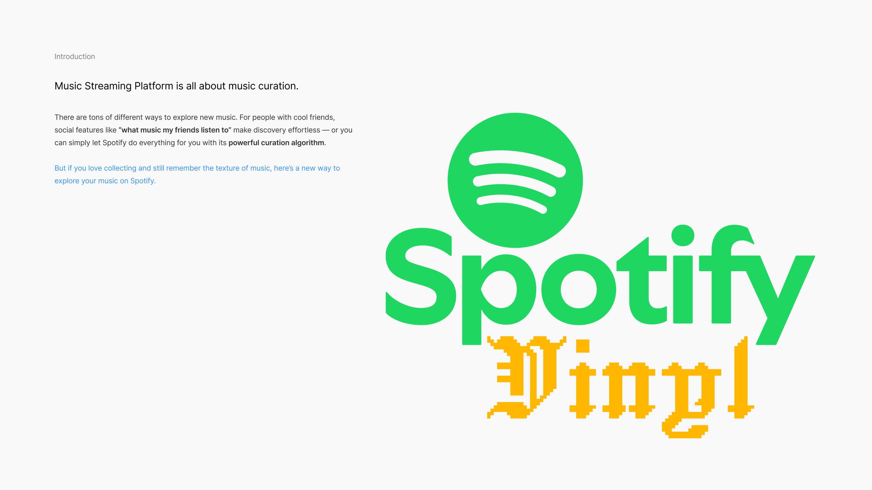 “Spotify Vinyl” is a product design concept that translates the physical behavior of vinyl digging into an intuitive music-discovery experience.